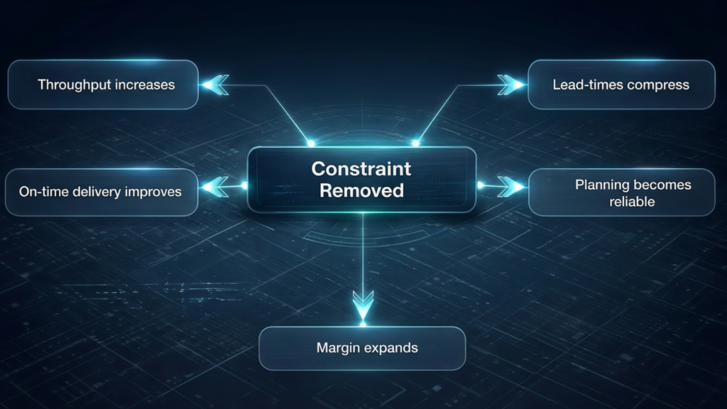 When the true constraint is identified and removed, the improvement does not stay isolated to one line item. It shows up across the operation.