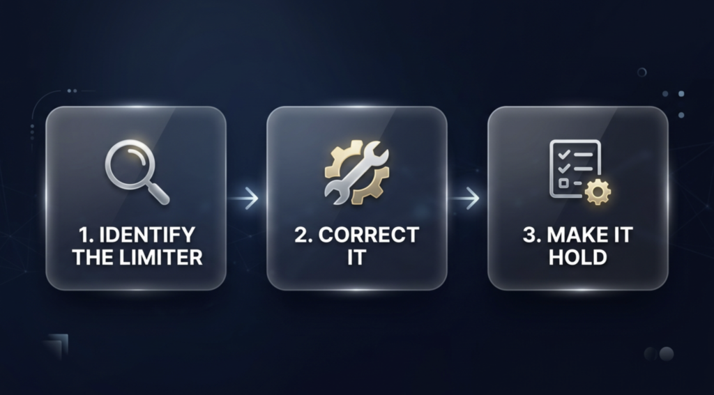 The path may change. The job does not. We identify the limiter, correct it, and make it hold.