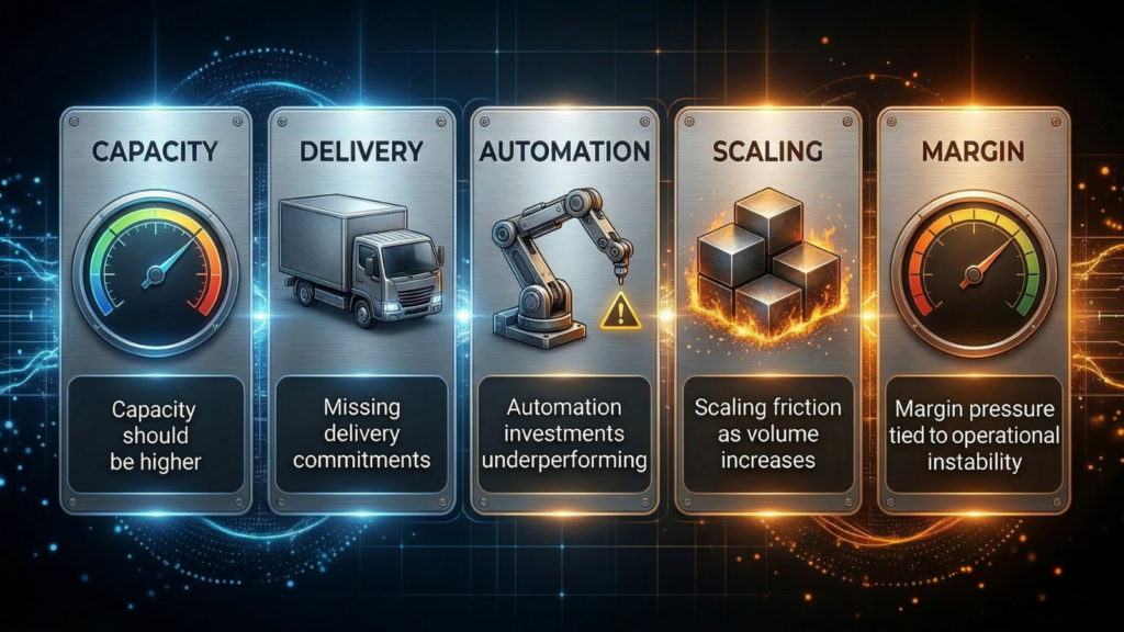 If you have output instability, recurring quality issues, schedule misses, excess labor, downtime, or rework, those are signals coming from the production system.